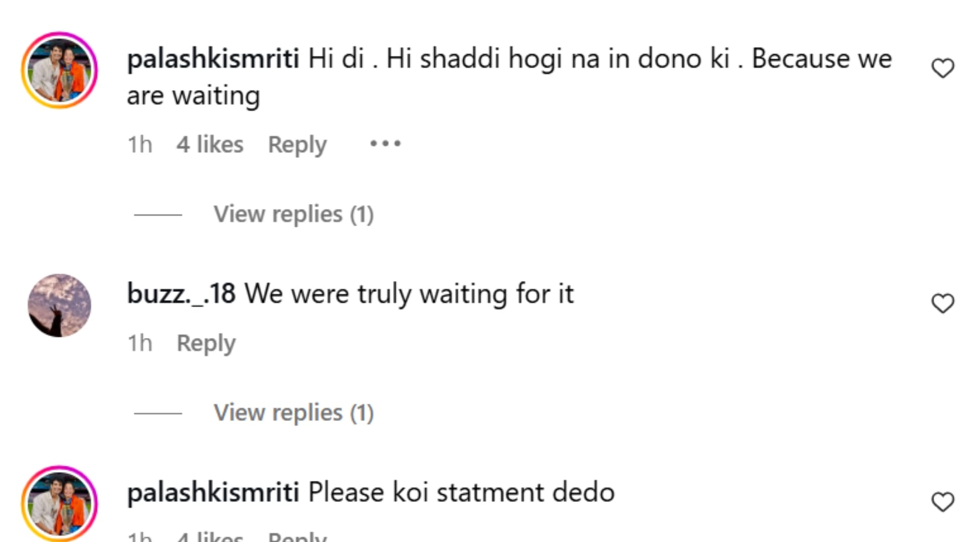 पलाश की कजिन ने शुक्रवार को अपने इंस्टाग्राम अकाउंट पर हल्दी और उसके बाद कुछ कुछ फंक्शन की वीडियो पोस्ट की हैं। एक वीडियो हल्दी का है। जिसमें पलाश नाच रहा है। दूसरा वीडियो एक क्रिकेट मैच का है, जाे पलाश और स्मृति ने टीम बनाकर खेला था। इन वीडियो पर यूजर्स ने रिएक्शन दिया और पलाश और स्मृति की शादी को लेकर सवाल किया। एक यूजर ने कमेंट किया, ‘शादी होगी न दोनों की, हम इंतजार कर रहे हैं।’ एक अन्य यूजर ने कमेंट किया, ‘आप लोग स्मृति और पलाश को कहो कि सच जल्दी बताएं।’ इसी तरह से कई सवाल यूजर्स ने पलाश और स्मृति की शादी को लेकर पूछे हैं।