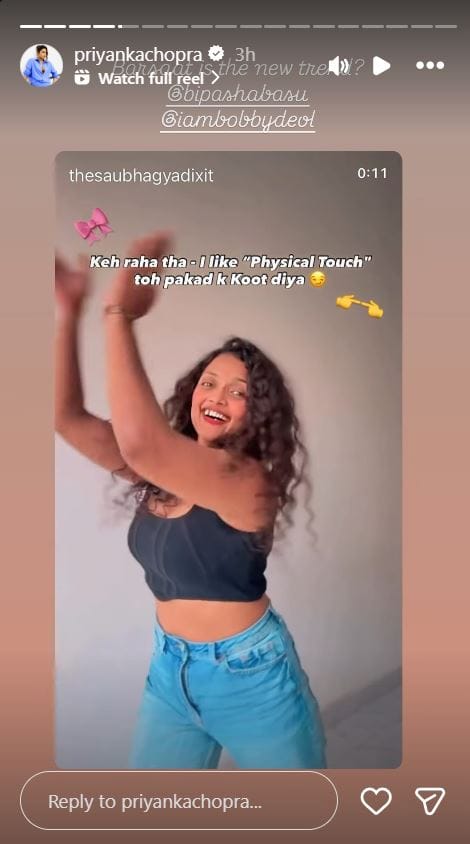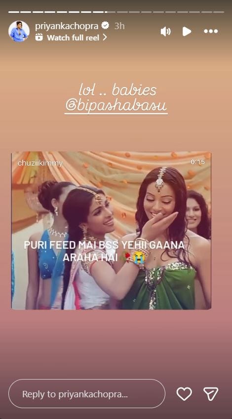 बॉलीवुड के कई पुराने गाने सोशल मीडिया पर वायरल हो जाते हैं। लोग इन पर रील्स बनाते हैं। इन दिनों फिल्म 'बरसात' (2005) का गाना 'तेरी दुल्हन सजाऊंगी' वायरल हो रहा है। प्रियंका चोपड़ा और बिपाशा बसु की अदाकारी वाले इस गाने पर कई यूजर्स रील्स बना रहे हैं। प्रियंका चोपड़ा ने इस गाने के वायरल होने पर प्रतिक्रिया दी है।