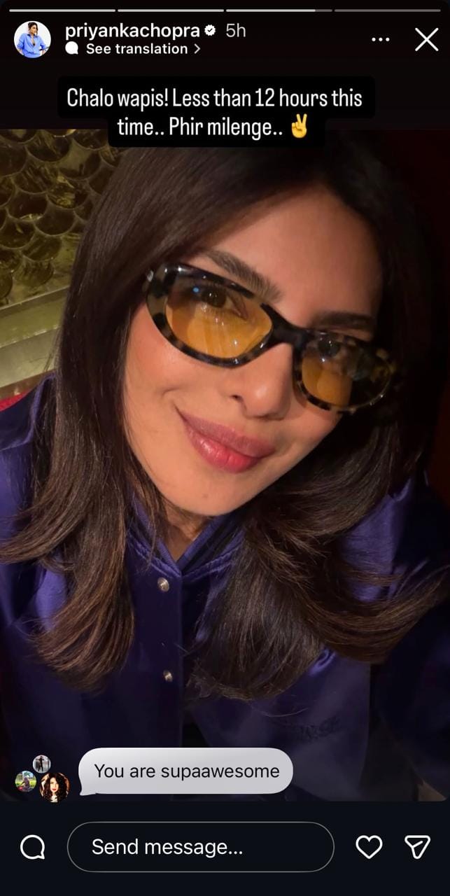‘वापल चलो…’, 12 घंटे से भी कम समय में भारत से अमेरिका लौटीं प्रियंका चोपड़ा; बोलीं- फिर मिलेंगे…
