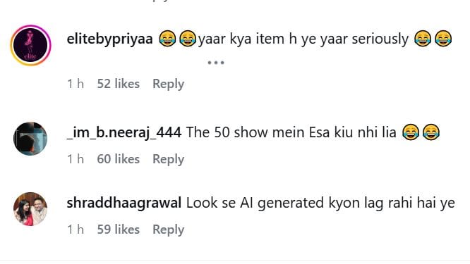 राखी सावंत एक अन्य वीडियो में पैपराजी पर नाराजगी जाहिर करती नजर आ रही हैं। वे कह रही हैं, 'मैं मंजुलिका दिख रही हूं क्या। 'तेरी मां मंजुलिका'। राखी के इस वीडियो पर नेटिजन्स के दिलचस्प कमेंट्स आ रहे हैं। यूजर्स लिख रहे हैं, फूलदान लग रही है। एक यूजर ने लिखा, 'इनको 'द 50' शो में क्यों नहीं लिया'?