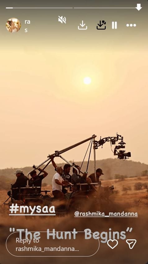रश्मिका मंदाना कई दिलचस्प प्रोजेक्ट्स में नजर आने वाली हैं। इनमें फिल्म 'मैसा' भी शामिल है। रश्मिका मंदाना ने शादी के बाद इस फिल्म की शूटिंग शुरू कर दी है। डायरेक्टर रविंद्र पुले ने आज मंगलवार को इंस्टाग्राम स्टोरी से एक पोस्ट शेयर किया है। उन्होंने सेट से फोटो शेयर करते हुए रश्मिका को टैग किया है। साथ ही कैप्शन लिखा है, 'मैसा'। शुरुआत हो गई है'।