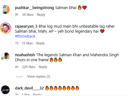 अतुल अग्निहोत्री द्वारा इंस्टाग्राम पर शेयर की गई इस तस्वीर पर फैंस ने जमकर प्यार लुटाया। कई यूजर्स ने इन तीनों दिग्गजों को देखने के बाद कमेंट्स किए। एक यूजर ने लिखा, 'सलमान खान और एमएस धोनी एक साथ- ये फ्रेम ही इतिहास है।' वहीं दूसरे फैन ने कहा, 'कीचड़ में भी भाईजान, माही और एपी ढिल्लों सुपरस्टार ही लग रहे हैं।'
