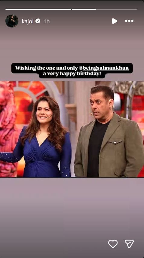 काजोल ने सलमान खान के साथ एक खूबसूरत तस्वीर शेयर करते हुए उन्हें जन्मदिन की बधाई दी है।