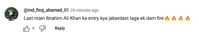 टीजर में इब्राहिम अली खान के लुक की तारीफ करते हुए एक फैन ने लिखा है 'लास्ट में इब्राहिम अली खान की एंट्री जबरदस्त लगी।' एक दूसरे यूजर ने लिखा 'इब्राहिम अली खान सैफ अली खान का एआई वर्जन लग रहे हैं।'