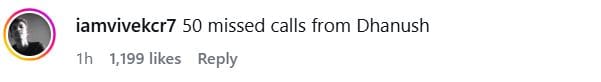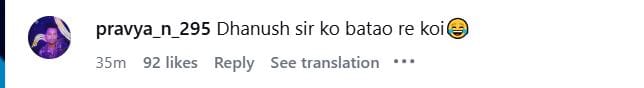 सिद्धांत चतुर्वेदी की पोस्ट को कई यूजर्स ने लाइक किया है और उस पर कमेंट किए हैं। एक यूजर ने लिखा है 'धनुष सर का क्या?' एक और यूजर ने लिखा है 'धनुष ने 50 मिस्ड कॉल्स किए।' एक और यूजर ने चुटकी लेते हुए लिखा है 'कोई धनुष सर को बताओ।' एक यूजर ने कहा है 'धनुष आपकी लोकेशन मांग रहे हैं।'