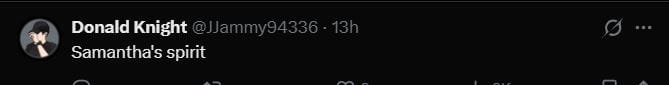 सोशल मीडिया पर वायरल इस वीडियो पर कई जूयर्स ने कमेंट किए हैं। कई यूजर्स ने इस घटना को सामंथा रुथ प्रभु से जोड़ा है। एक यूजर ने लिख है 'सामंथा को छोड़ने का नतीजा है।' एक दूसरे यूजर ने लिखा 'सामंथा की आत्मा।' तीसरे यूजर ने लिखा 'सामंथा कोने में रो रही है।' एक और यूजर ने लिखा 'बेचारा शायद सामंथा के बारे में सोच रहा था।'