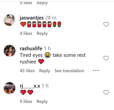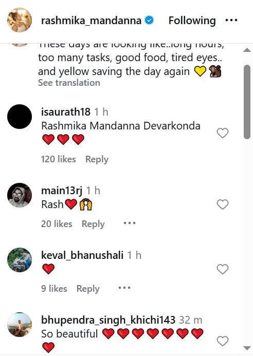 रश्मिका मंदाना के इस पोस्ट पर नेटिजन्स रिएक्ट कर रहे हैं। कुछ उनके मैसी हेयरस्टाइल वाले इस लुक की तारीफ कर रहे हैं। वहीं, कुछ नेटिजन्स उन्हें आराम करने की सलाह दे रहे हैं। रश्मिका मंदाना के वर्क फ्रंट की बात करें तो उनकी आगामी फिल्म 'कॉकटेल 2' है, जिसमें वे कृति सेनन और शाहिद कपूर के साथ स्क्रीन शेयर करती नजर आएंगी।