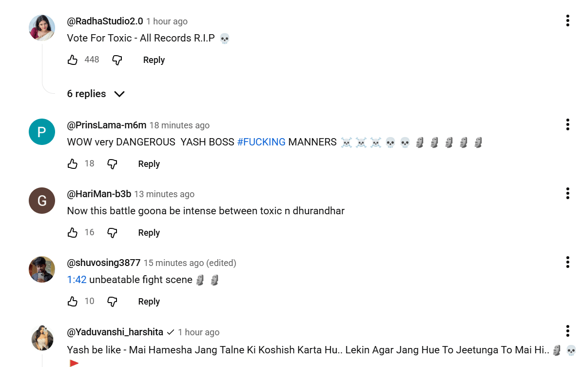 कई यूजर्स ने ‘टॉक्सिक’ के टीजर की तुलना ‘धुरंधर 2’ के टीजर से की। जाहिर है कि दोनों फिल्में एक ही दिन रिलीज हो रही हैं, तो तुलना होना लाजिमी है। हालांकि, कई यूजर्स का मानना है कि टॉक्सिक ये मुकाबला जीतने वाला है। तो वहीं कुछ यूजर्स ने दोनों ही टीजर की तारीफ की है।