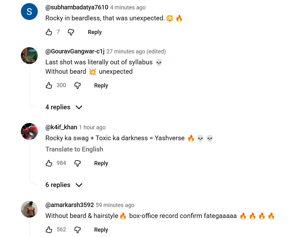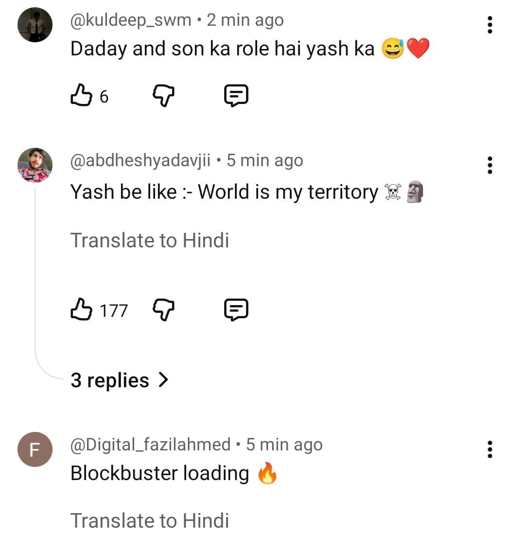 एक ने कहा कि यश पूरी दुनिया को अपना इलाका समझते हैं। तो वहीं कुछ को टीजर में यश का ट्रांसफॉर्मेशन पसंद आया है। जबकि कई और फैंस को भी यश का छोटे बाल और हल्की दाढ़ी वाला लुक काफी पसंद आ रहा है।
