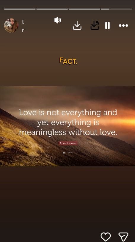 अभिनेता थलापति विजय अब राजनीति में सक्रिय हैं। वे तमिलनाडु चुनाव में अपनी किस्मत आजमाने जा रहे हैं। तमाम राजनीतिक चर्चाओं के बीच विजय अपनी पर्सनल लाइफ को लेकर भी सुर्खियों में हैं। उनका नाम तृषा से जोड़ा जा रहा है। इस बीच तृषा के इस क्रिप्टिक पोस्ट ने ऐसी चर्चाओं को और हवा दे दी है। बीते कुछ दिनों से तृषा चुप थीं, मगर हाल ही में उन्होंने एक क्रिप्टिक पोस्ट साझा किया है, जिसने सबका ध्यान खींचा है। तृषा कृष्णन ने अपने इंस्टाग्राम अकाउंट की स्टोरी पर एक पोस्ट साझा किया है। उन्होंने एक तस्वीर लगाई है, जिस पर कोट लिखा है, 'प्यार ही सब कुछ नहीं है, फिर भी प्यार के बिना सब कुछ बेमानी है। यही फैक्ट है'।