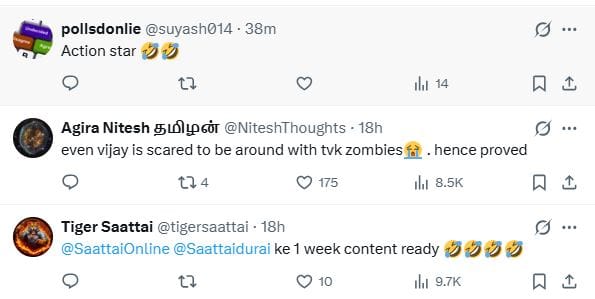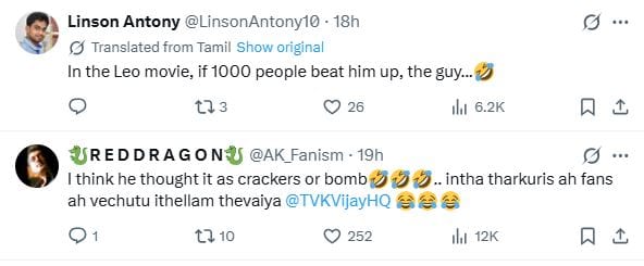 ये वीडियो देखते ही देखते सोशल मीडिया पर वायरल हो गया। अब लोग इस वीडियो के लिए विजय को ट्रोल कर रहे हैं। कई यूजर इसकी तुलना उनकी फिल्मों से करते हुए बोल रहे हैं कि फिल्मों में वे एक्शन हीरो का किरदार निभाते हैं, लेकिन यहां फूलों से डर गए। कुछ यूजर्स ने लिखा कि वो फैंस हैं, भूत नहीं है। वहीं कुछ अन्य यूजर्स ने लिखा- वो फूल हैं, कोई बॉम्ब नहीं।