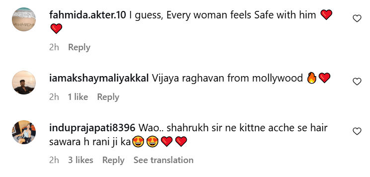 इस वीडियो के सामने आने के बाद अब फैंस शाहरुख और रानी पर प्यार लुटा रहे हैं। कई फैंस कमेंट कर रहे हैं, ‘एक ही तो दिल है कितनी बार जीतोगे शाहरुख बाबू।’ तो वहीं कुछ फैंस शाहरुख के प्यारे व्यवहार की तारीफ कर रहे हैं। एक प्रशंसक ने लिखा, 'शाहरुख से बेहतर सज्जन कोई नहीं हो सकता। तो दूसरे ने लिखा, 'कुछ कुछ होता है और कभी अलविदा न कहना की पुरानी यादें'। फैंस अब शाहरुख के इस अंदाज की तारीफ कर रहे हैं।