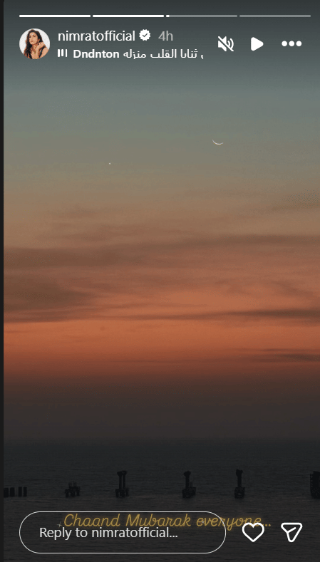 निमरत कौर ने इंस्टाग्राम स्टोरी पर चांद की एक खूबसूरत तस्वीर शेयर की है। इस तस्वीर के साथ उन्होंने सभी को ईद की शुभकामनाएं दी हैं। उन्होंने लिखा, 'सभी को चांद मुबारक'