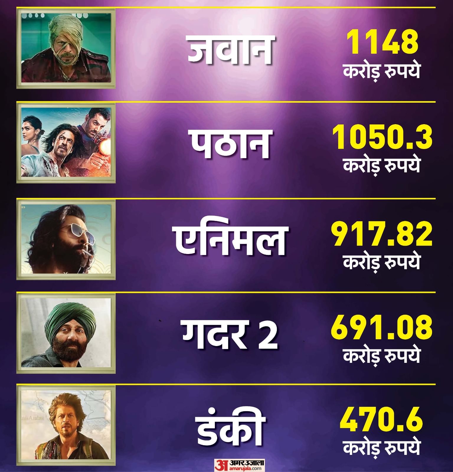 साल 2023 की शाहरुख खान की तीसरी फिल्म डंकी भी उन टॉप 5 फिल्मों की लिस्ट में शामिल हैं, जिन्होंने अच्छी कमाई की थी। डंकी ने घरेलू बॉक्स ऑफिस पर 212.42 करोड़ रुपये की कमाई की थी और वैश्विक बॉक्स ऑफिस पर 470.6 करोड़ रुपये की कमाई की थी। फिल्म में शाहरुख खान, तापसी पन्नू और बोमन ईरानी थे।