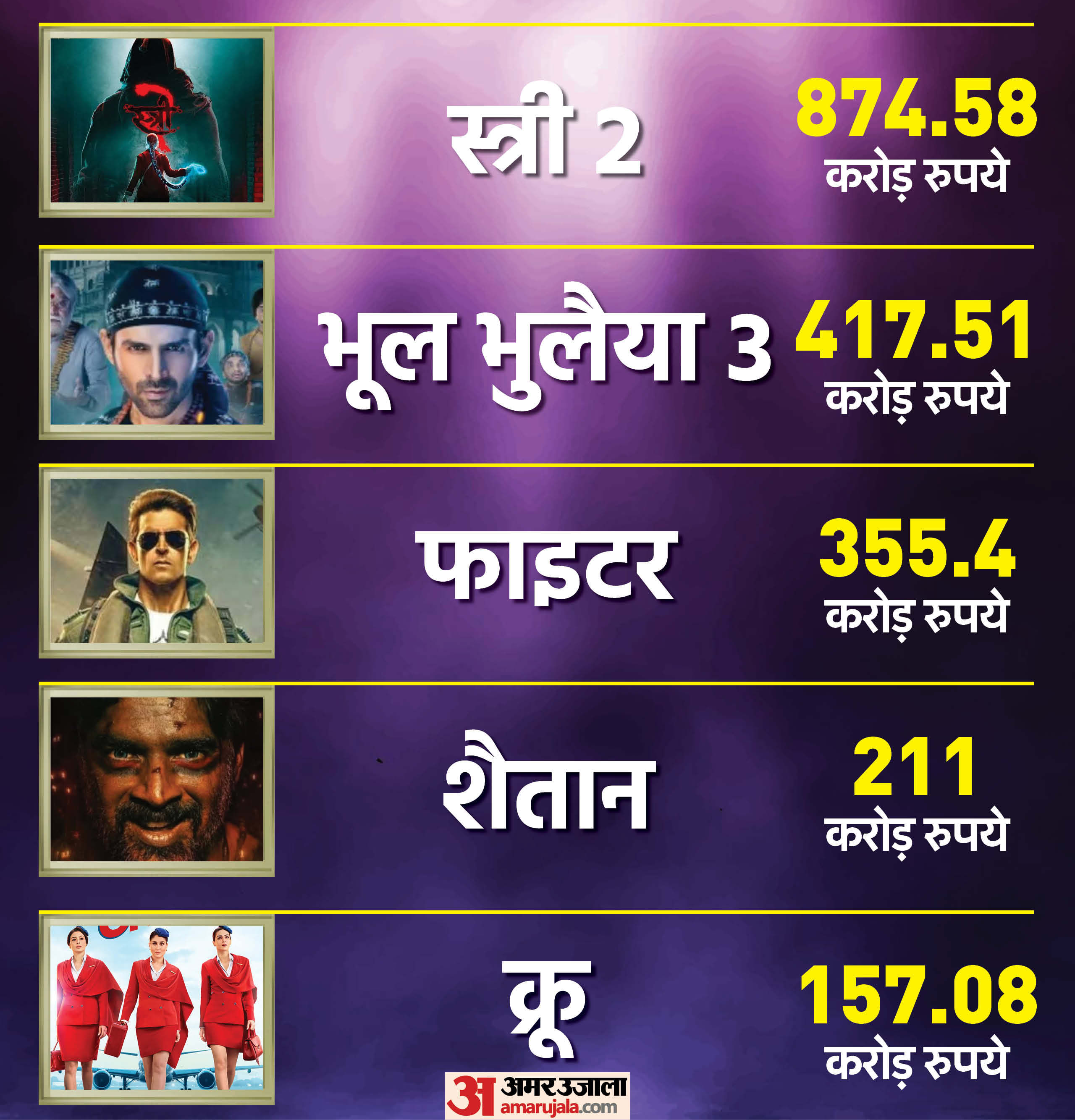 श्रद्धा कपूर, राजकुमार राव, पंकज त्रिपाठी, अपारशक्ति खुराना स्टारर फिल्म स्त्री 2 साल 2024 की सबसे ज्यादा कमाई करने वाली फिल्म है। इसने घरेलू बॉक्स ऑफिस पर 627.02 करोड़ रुपये की कमाई की थी और वैश्विक बॉक्स ऑफिस पर 874.58 करोड़ रुपये का कलेक्शन किया था। बॉलीवुड के लिए यह फिल्म वो तोहफा बनकर आई थी, जिसका दर्शक लंबे समय से इंतजार कर रहे थे।