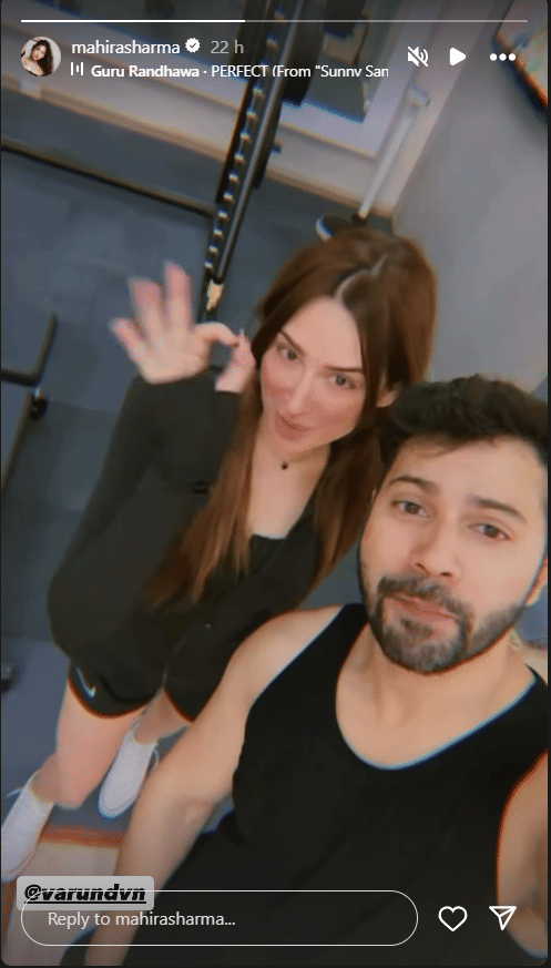 'बिग बॉस 13' से चर्चित हुईं एक्ट्रेस माहिरा शर्मा ने अपने इंस्टाग्राम स्टोरी पर एक वीडियो शेयर किया है, जिसमें उन्हें वरुण धवन संग डांस करते देखा जा रहा है। इसमें अभिनेता की आगामी फिल्म 'सनी संस्कारी की तुलसी कुमारी' का गाना 'परफेक्ट' बैकग्राउंड में बज रहा है। इसी गाने के स्टेप्स को दोनों साथ में करते नजर रहे हैं। अभिनेता का स्वैग अंदाज दिख रहा है, तो माहिरा की अदाएं भी दर्शकों का ध्यान खींच रही हैं।
