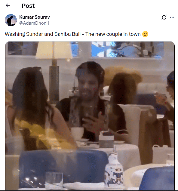 सोशल मीडिया पर तेजी से वायरल होने वाले इस वीडियो में वॉशिंगटन और साहिबा को बातचीत करते और मुस्कुराते हुए देखा गया। क्लिप के सामने आते ही फैंस ने साहिबा को वॉशिंगटन सुंदर की गर्लफ्रेंड तक कहना शुरू कर दिया। कई यूजर्स ने तो इसे दोनों के रिश्ते की ऑफिशियल तरीके से शुरुआत ही बता दिया। हालांकि फिलहाल दोनों में से किसी ने भी इस पर कुछ नहीं कहा है।