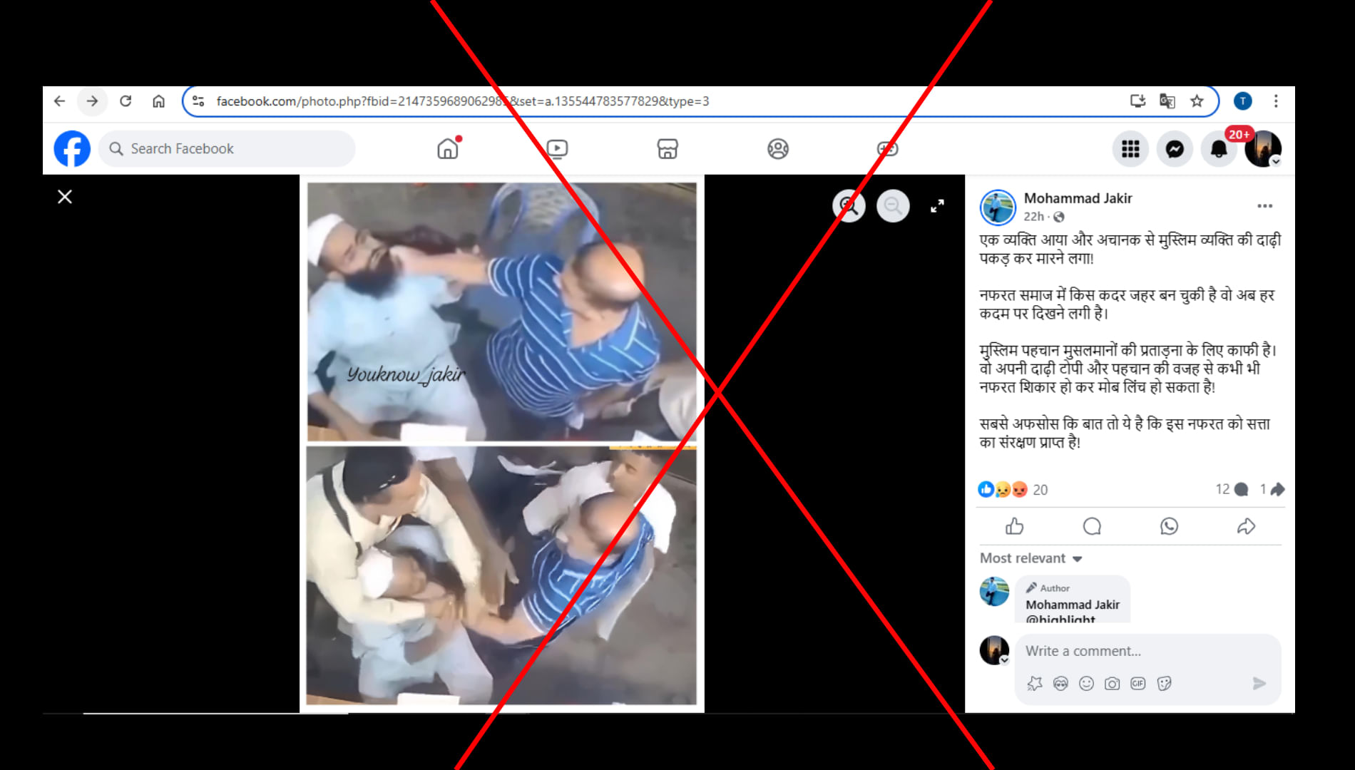 सोशल मीडिया पर एक तस्वीर वायरल हो रही है। तस्वीर में एक शख्स दूसरे आदमी के दाढ़ी को पकड़े हुए नजर आ रहा है। तस्वीर को शेयर कर दावा किया जा रहा है कि यह घटना भारत का है, जहां एक व्यक्ति मुस्लिम व्यक्ति की दाढ़ी पकड़ कर मार रहा है।