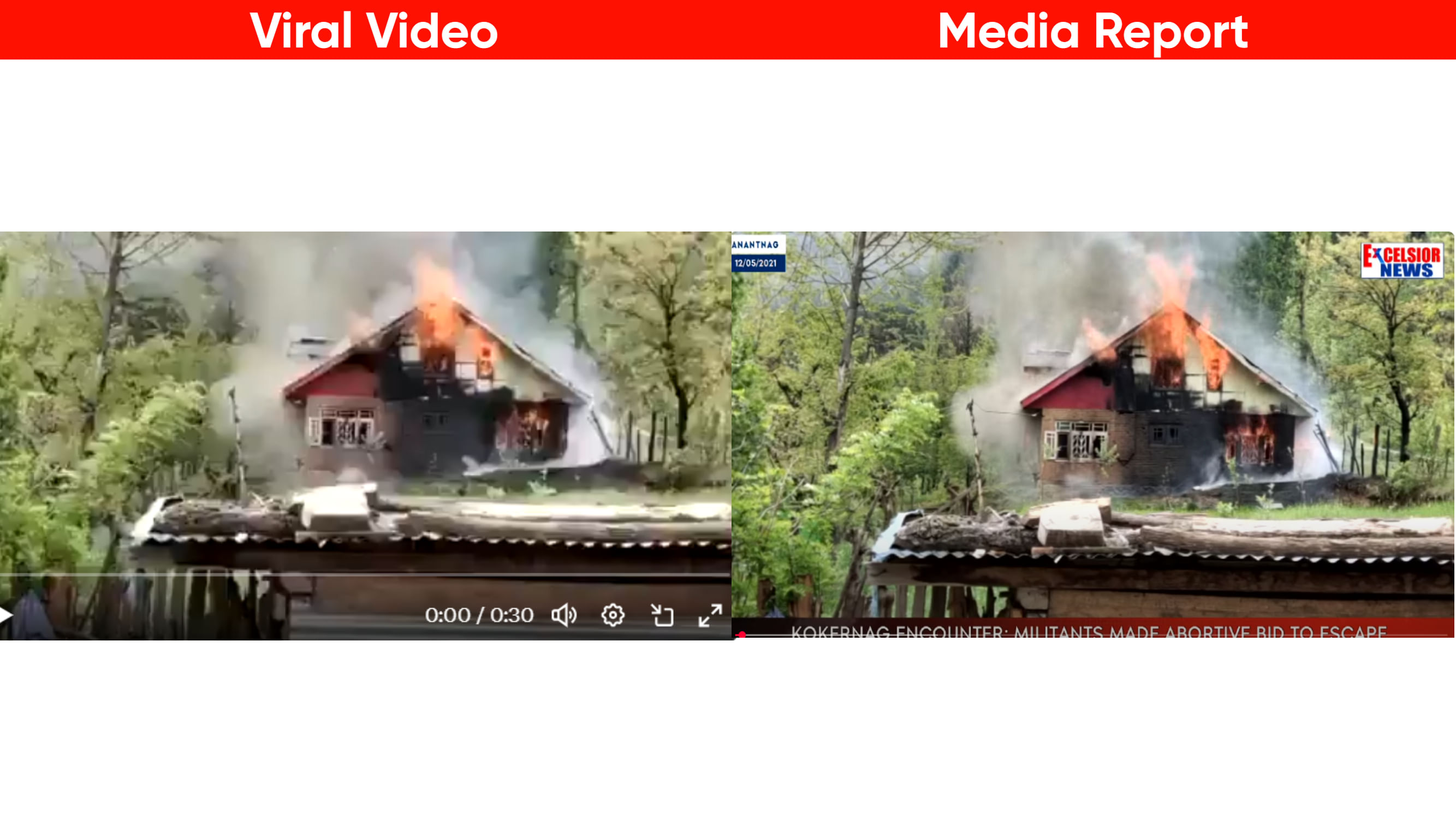 जलते हुए घर के एक वीडियो को सोशल मीडिया पर शेयर किया जा रहा है। दावा किया जा रहा है कि पहलगाम में हमला करने वाले आतंकी इसी घर में रुके थे। इसी के साथ घर पर गोलियां भी बरसाई जा रही हैं। वीडियो को पहलगाम में हुए हमले का बदला बताकर शेयर किया जा रहा है। कहा जा रहा है कि भारतीय सेना ने पहलगाम हमले की जवाबी कार्रवाई करते हुए आतंकियों का घर को नष्ट कर दिया है। अमर उजाला नें अपनी पड़ताल में इस दावे को गलत पाया है। हमारी पड़ताल में यह दावा भ्रामक साबित हुआ है। पड़ताल में पता चला कि यह वीडियो 2021 का है जिसे अभी का बताकर शेयर किया जा रहा है। जांच में पता चला कि वीडियो अनंतनाग के कोकरनाग में भारतीय सेना द्वारा 2021 में की गई एक कार्रवाई का है।