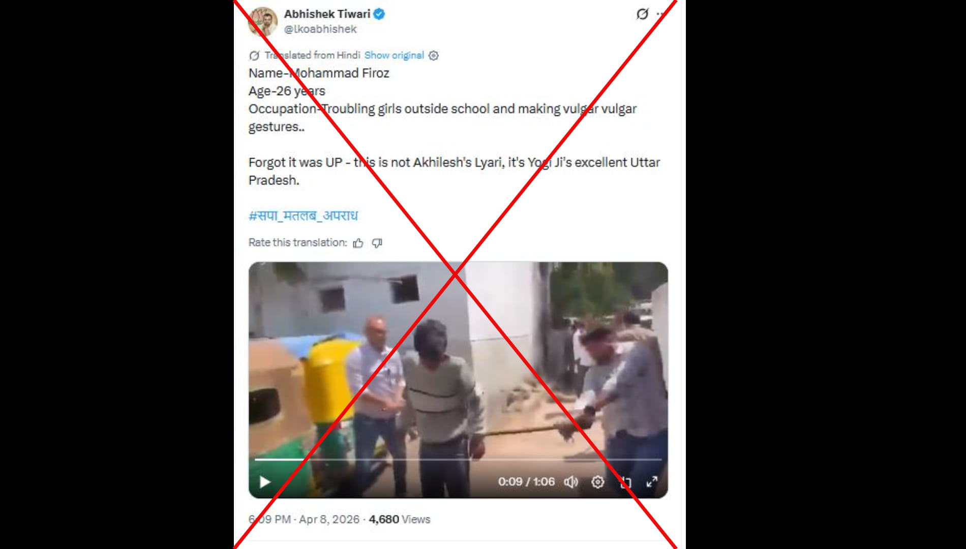 अभिषेक तिवारी (@lkoabhishek) नाम के एक्स यूजर ने लिखा, ”नाम- मोहम्मद फिरोज उम्र- 26 वर्ष पेशा- स्कूल के बाहर लड़कियों को परेशान करना और अश्लील इशारे करना। भूल गया था कि यह उत्तर प्रदेश है - यह अखिलेश जी का लयारी नहीं, योगी जी का शानदार उत्तर प्रदेश है।” पोस्ट का लिंक आप यहां और आर्काइव लिंक यहां देख सकते हैं।