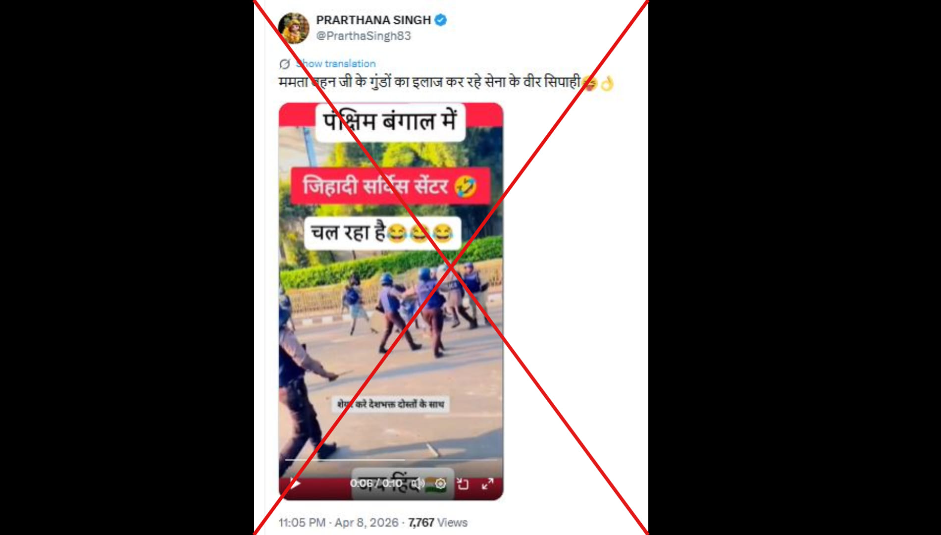प्रार्थना सिंह (@PrarthaSingh83) नाम के एक्स यूजर ने लिखा, “ममता बहन जी के गुंडों का इलाज कर रहे सेना के वीर सिपाही” पोस्ट का लिंक आप यहां और आर्काइव लिंक यहां देख सकते हैं।