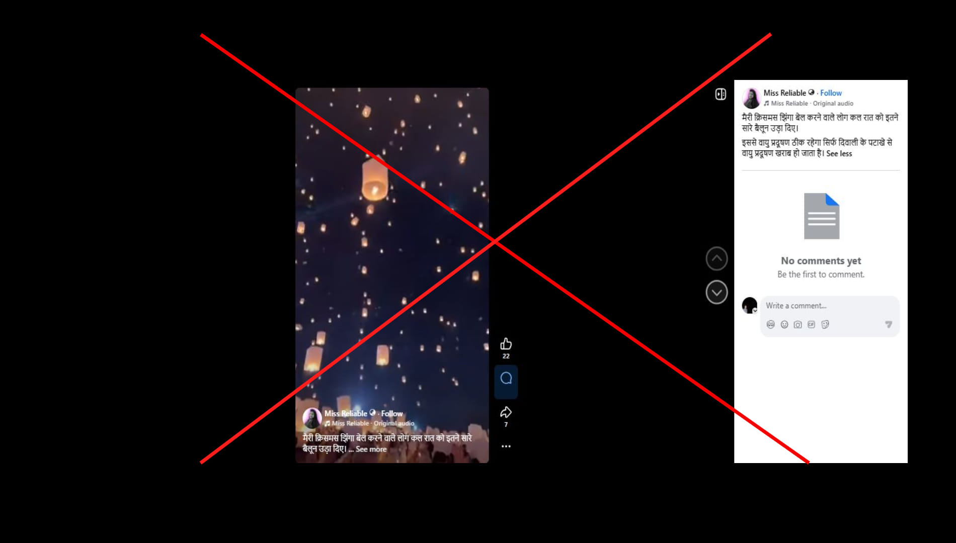 मिस रिलायबल नाम के फेसबुक यूजर ने लिखा, “मैरी क्रिसमस झिंगा बेल करने वाले लोग कल रात को इतने सारे बैलून उड़ा दिए। इससे वायु प्रदूषण ठीक रहेगा सिर्फ दिवाली के पटाखे से वायु प्रदूषण खराब हो जाता है।“ पोस्ट का लिंक आप यहां और आर्काइव लिंक यहां देख सकते हैं।
