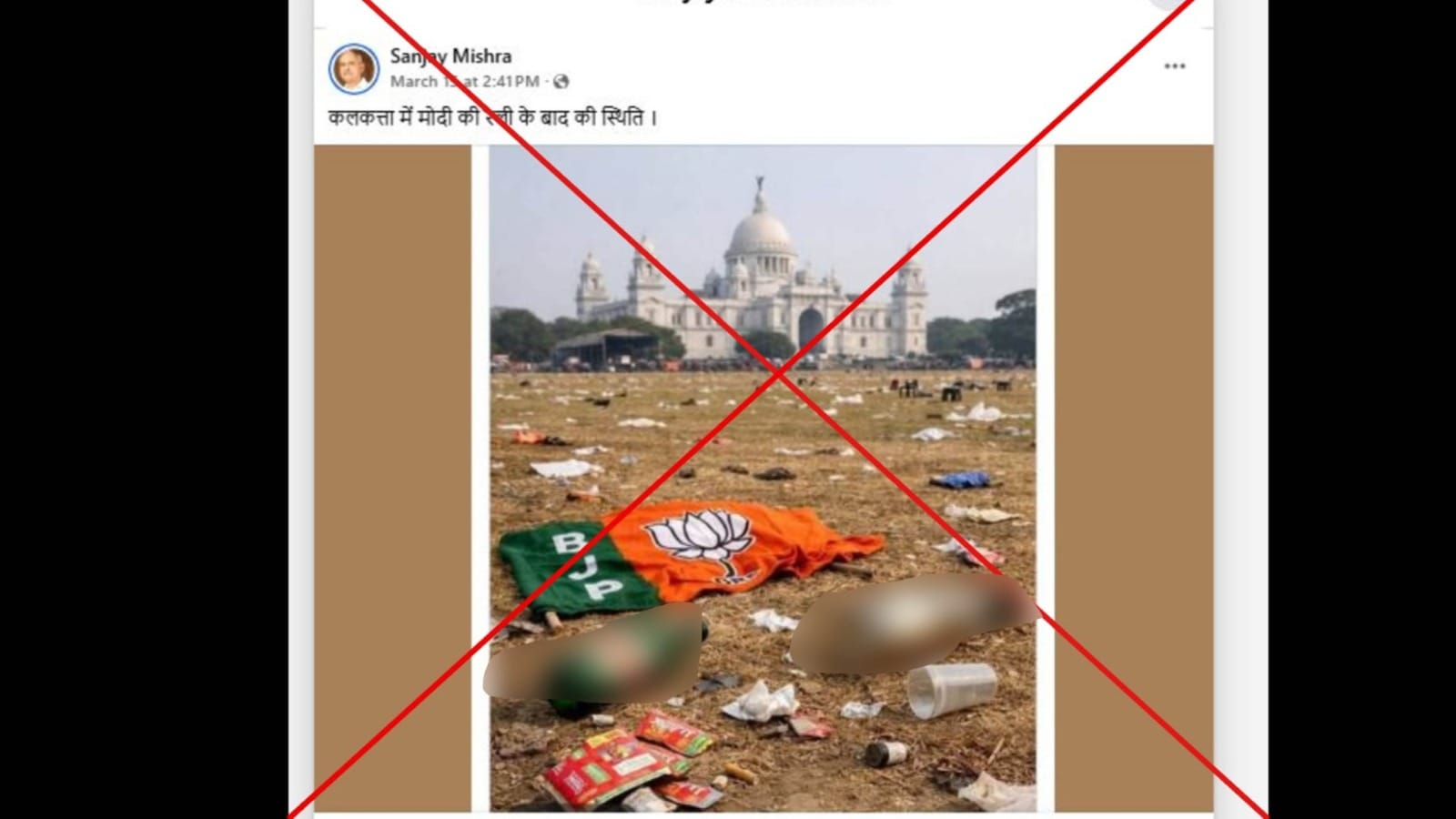 संजय मिश्रा नाम के फेसबुक यूजर ने लिखा,"कलकत्ता में मोदी की रैली के बाद की स्थिति।” पोस्ट का लिंक आप यहां और आर्काइव लिंक यहां देख सकते हैं।