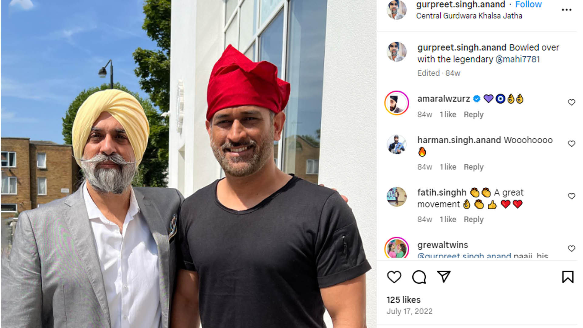 यहां से संकेत लेते हुए हमने खालसा जत्था के प्रमुख गुरप्रीत सिंह आनंद की सोशल मीडिया प्रोफाइल खंगाली। सबसे पहले 26 फरवरी 2024 की पोस्ट मिली जिसमें धोनी की तस्वीर साझा की गई थी। हालांकि, कमेंट सेक्शन में कई यूजर ने दावा किया कि फोटो अभी की नहीं है। धोनी के लंदन दौरे पर अधिक जानकारी के लिए हमने अमर उजाला की स्पोर्ट्स टीम से संपर्क किया जहां से जुलाई 2022 में प्रकाशित एक रिपोर्ट मिली। रिपोर्ट के अनुसार, धोनी उस वक्त लंदन में थे। वे भारत और इंग्लैंड के बीच दोनों वनडे देखने पहुंचे थे। इस दौरान धोनी ने कई सितारों से भी मुलाकात की थी। टी-20 सीरीज के दौरान धोनी टीम इंडिया की ड्रेसिंग रूम में भी पहुंचे थे।