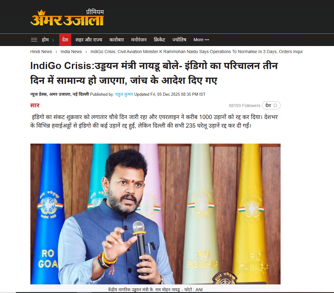 पायलटों और क्रू के लिए सरकार के द्वारा नए नियम बनाने के बाद इंडिगों की कई उड़ानें रद्द हो गईं। उड़ानों में देरी और रद्द होने के कारण यात्री एयरपोर्ट पर परेशान होते रहे। इसी बीच, नागरिक उड्डयन मंत्री राम मोहन नायडू का एक वीडियो वायरल हो गया है, जिसमें वे किसी कार्यक्रम में नाचते हुए दिखाई दे रहे हैं। वीडियो को शेयर करके दावा किया जा रहा है कि मंत्री विमानन संकट को देखने के बजाय मौज मस्ती करते हुए नजर आ रहे हैं।