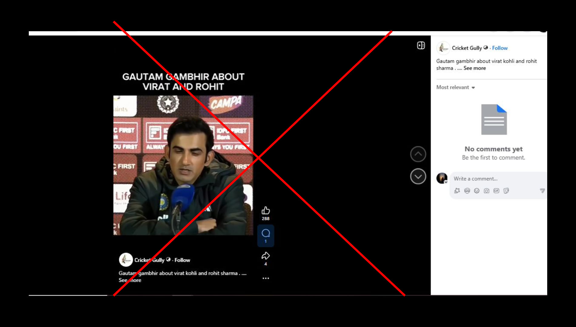क्रिकेट गली नाम के फेसबुक यूजर ने लिखा, ”गौतम गंभीर ने विराट कोहली और रोहित शर्मा के बारे में बात की।” पोस्ट का लिंक आप यहां और आर्काइव लिंक यहां देख सकते हैं।