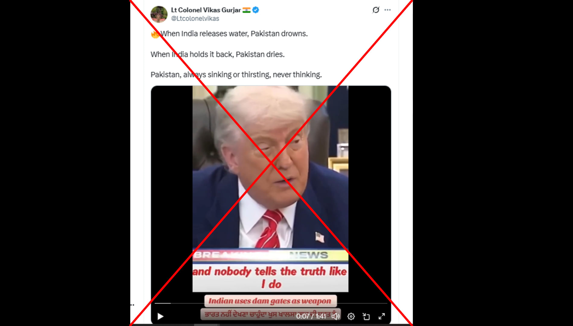 लेफ्टिनेंट कर्नल विकास गुर्जर (@Ltcolonelvikas) नाम के एक्स यूजर ने लिखा, “जब भारत पानी छोड़ता है, तो पाकिस्तान डूब जाता है। जब भारत पानी रोक लेता है, तो पाकिस्तान सूख जाता है। पाकिस्तान हमेशा डूबता या प्यासा रहता है, कभी कुछ सोचता नहीं।” पोस्ट का लिंक आप यहां और आर्काइव लिंक यहां देख सकते हैं।