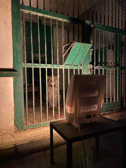तेंदुए के बाड़े में लगा हीटर। स्रोत : चिड़ियाघर