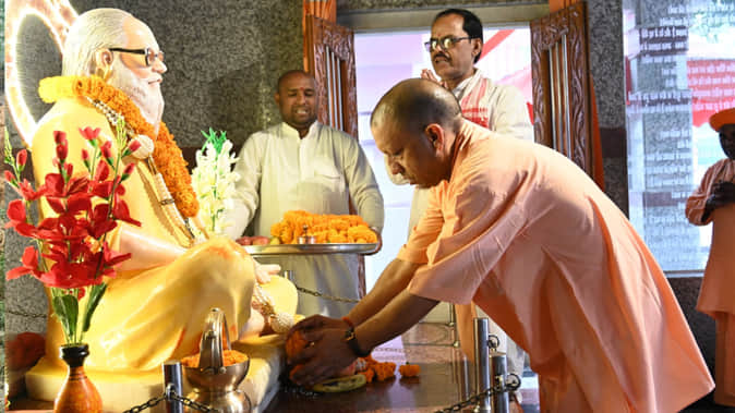 दर्शन पूजन करते सीएम योगी