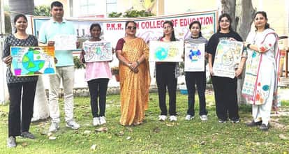 अंबाला सिटी के पीकेआर जैन कॉलेज में प्रतियोगिता के दौरान मौजूद प्रतिभागी व प्राचार्य। प्रवक्ता