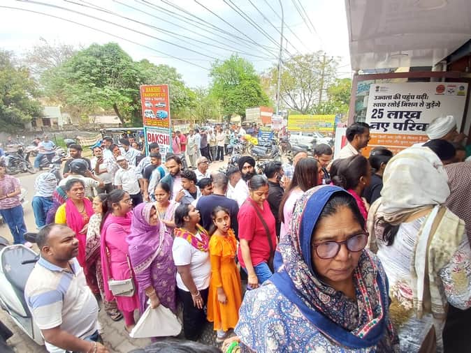 अंबाला छावनी में गैस के लिए लाइन में लगे उपभोक्ता। संवाद