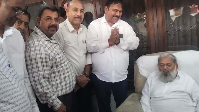 अंबाला छावनी में शास्त्री कॉलोनी आवास पर कैबिनेट मंत्री अनिल विज को बधाई देते सेक्टर 34 एसोसिएश