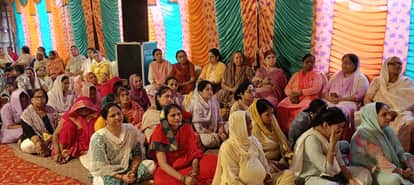 सिद्ध किराना मंदिर में श्रीमद्भागवत कथा सुनते श्रद्धालु। प्रवक्ता