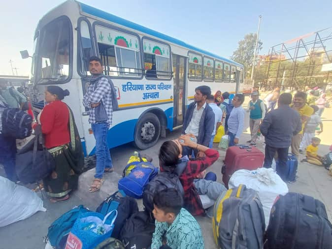 अंबाला छावीन बस अड्डे पर बस की इंतजार करते यात्री। संवाद