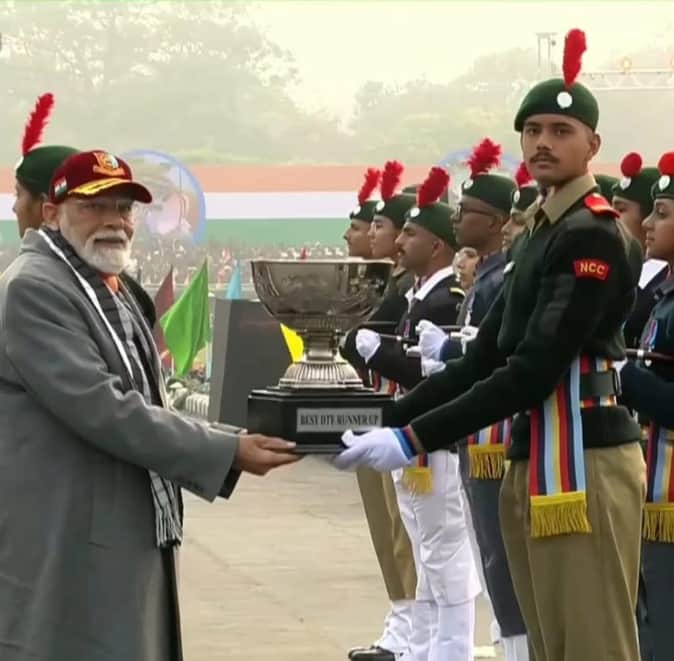दिल्ली के करियप्पा परेड ग्राउंड में आयोजित नेशनल कैडेट कोर (एनसीसी) की वार्षिक रैली में प्रधानम