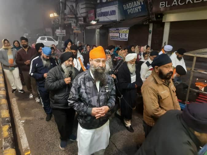 अंबाला छावनी के सदर बाजार में साझी प्रभातफेरी में नाम सिमरण करती संगत। प्रवक्ता