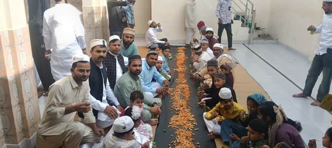 बराड़ा में ईद की नमाज अदा करने के बाद मस्जिद में जलपान करते हुए । संवाद