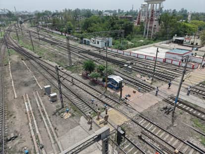 अंबाला कैंट रेलवे स्टेशन के नजदीक रेल लाइन का ड्रोन से लिया गया फोटो। आरपीएफ