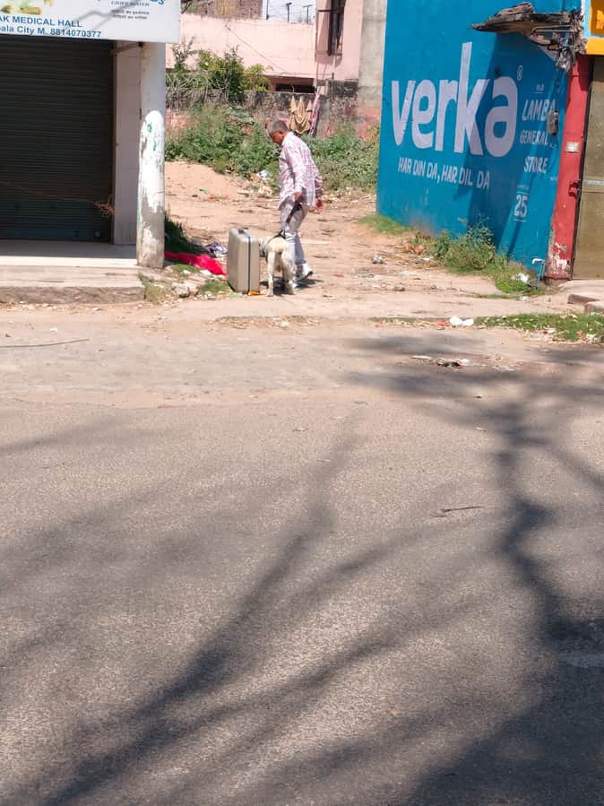 अंबाला सिटी पुलिस लाइन के मुख्य बाजार के पास मिली अटैची की खोजी कुत्ते के साथ जांच करते हुए पु
