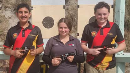 सामर्थ्य सांगवान आस्ट्रेलिया में आयोजित पिस्टल स्पर्धा के दौरान बाकी विजेता खिलाड़ियों के साथ।