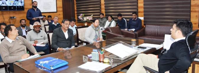 लघु सचिवालय में अधिकारियों की बैठक लेते उपायुक्त साहिल गुप्ता।