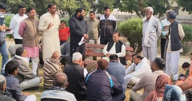 बंसीलाल पार्क में आयोजित खुले दरबार में लोगों की समस्याएं सुनते विधायक घनश्याम सर्राफ, भवानी प्