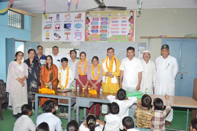 राजकीय माध्यमिक विद्यालय जूई बिचली के एनएमएमएस परीक्षा में चयनित विद्यार्थियों को सम्मानित करत