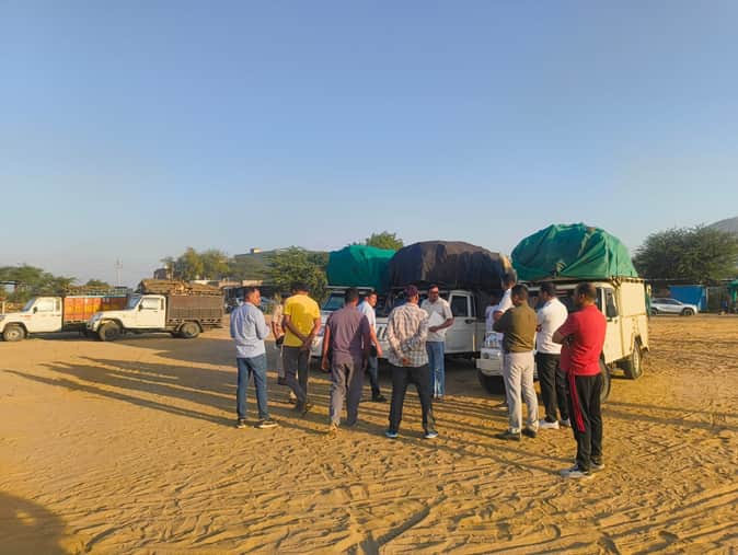पकड़ी गई लकड़ियाें की पिकअप गाड़ियों पर कार्रवाई करते मुख्यमंत्री उड़नदस्ता व वन विभाग की टीम