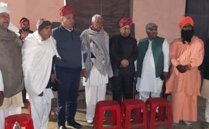 गांव धनाना में गो सेवा आयोग के अध्यक्ष श्रवण कुमार का अभिनंदन करते ग्रामीण।
