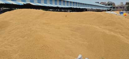 भिवानी की अनाज मंडी में लगे गेहूं के ढेर।